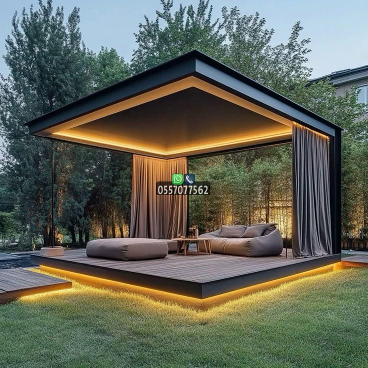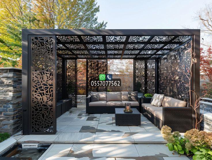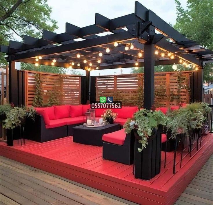 - البرجولات الخشبية والمعدنية: تضيف لمسة معمارية راقية، ويمكن تغطيتها بالكامل أو جزئيًا بأقمشة مقاومة للشمس، أو نباتات متسلقة لظل طبيعي.