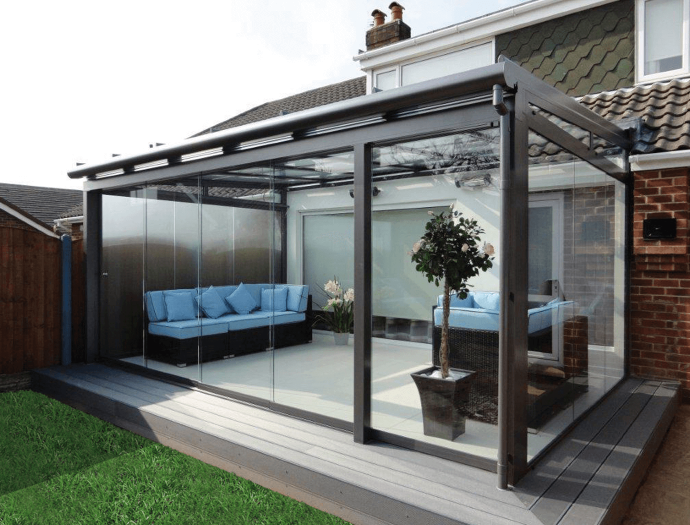 ملاحق خارجية زجاجية قابلة للتحويل لمناسبات خاصة أو جلسات عائلية.